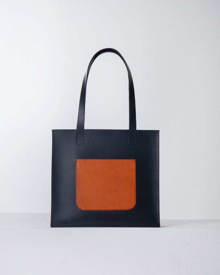 Medium size Tote bag from Vegetable-tanned leather in black color only.